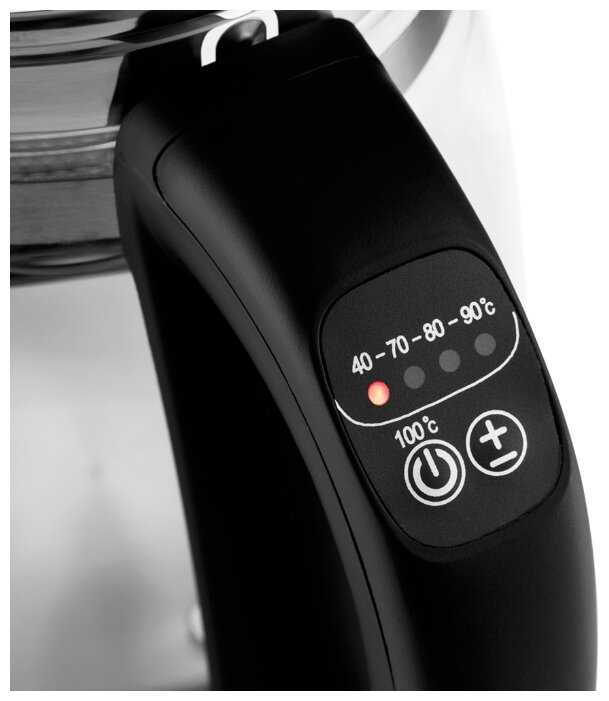 - Режимы 40°, 70°, 80°, 90°, 100° позволяют подогревать воду без кипячения, сохраняя полезные свойства травяных чаев или для детского питания.