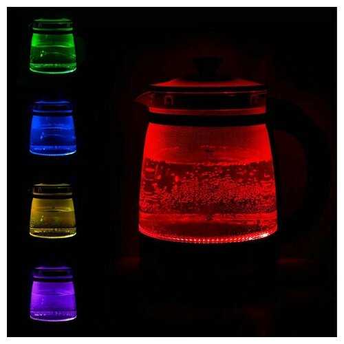 Купила чайник не пожалела,подсветка разная. видно объем воды.