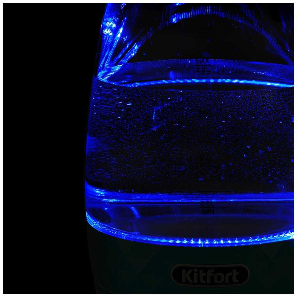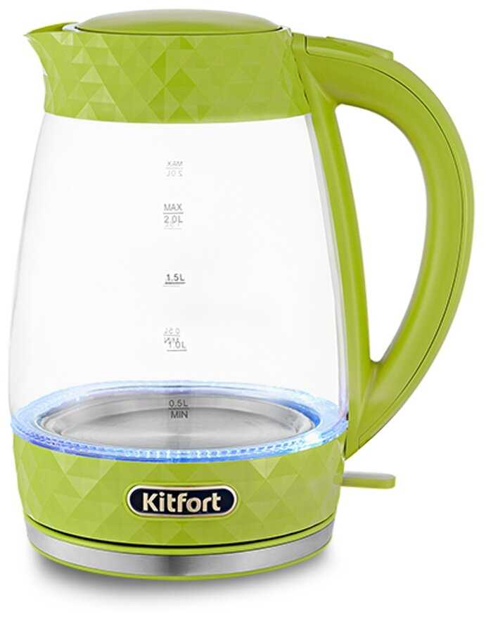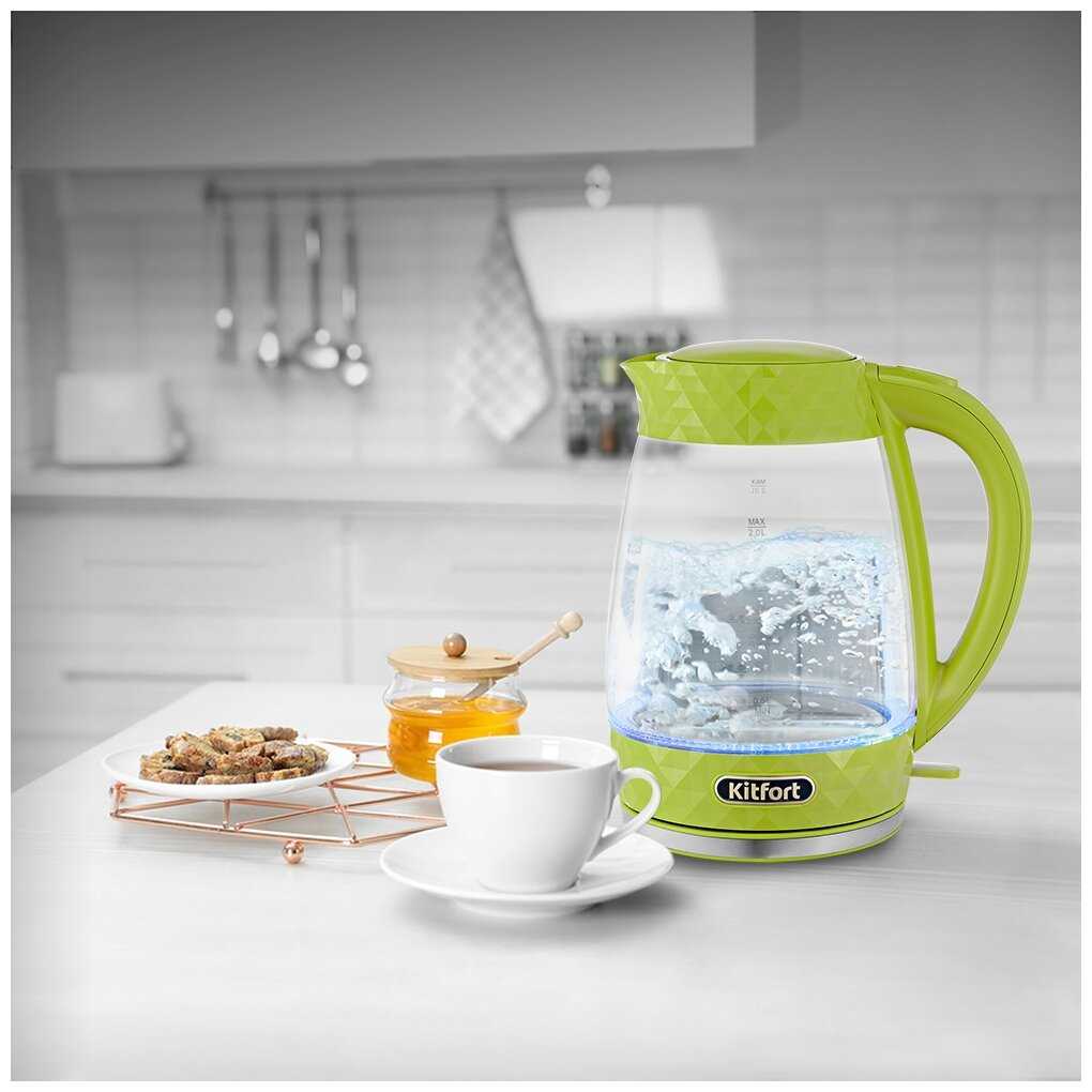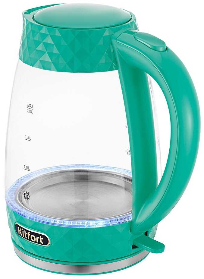 - Необычная граненая форма и прозрачный стеклянный корпус делают его привлекательным, особенно в сочетании с другими предметами кухни от Kitfort.