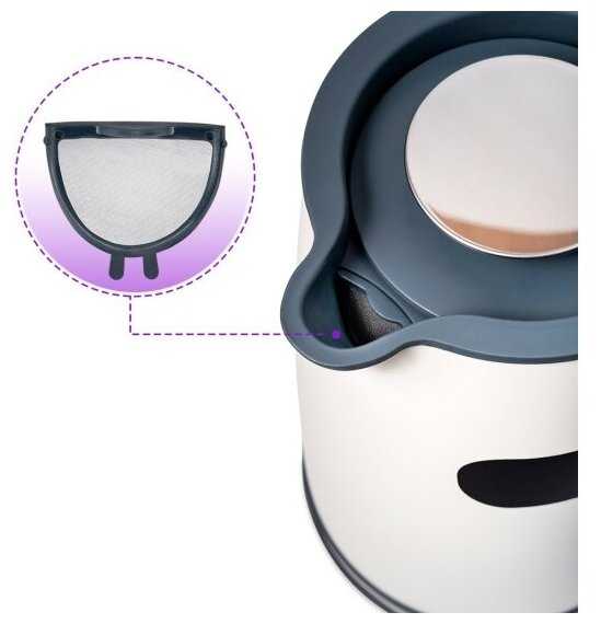 - - Одним из критериев выбора чайника была сеточка от накипи, но оказалось что здесь бесполезная сетка для красоты, т.к. слишком большой зазор между чайником и сеточкой, не плотно прилегает. И накипь не задерживается.