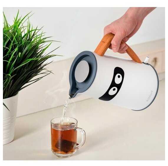 Чайник понравился! Вместимость стандартная 1,7 л. Работает тихо, при этом достаточно быстро нагревается вода. В дальнейшем чайник неплохо сохраняет температуру. Дизайн необычный, хорошо вписывается в любой интерьер. Обидно, что глаза просто наклейка, надеюсь не отскочит. В целом чайник хороший, собран по ощущениям качественный.