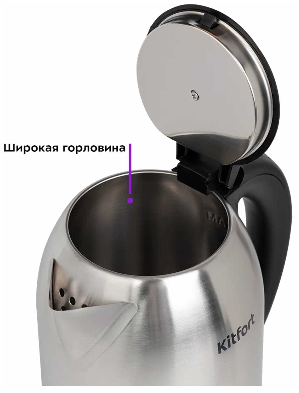 - + Отличный объем чайника 1,7 литра.Полностью из металла. Есть световой датчик включения. У чайника широкая горловина ,что очень удобно когда моешь.