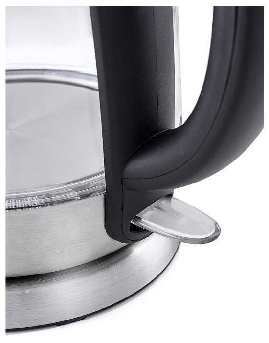 - Прозрачное стекло позволяет видеть уровень воды, процесс кипения и накипь внутри.