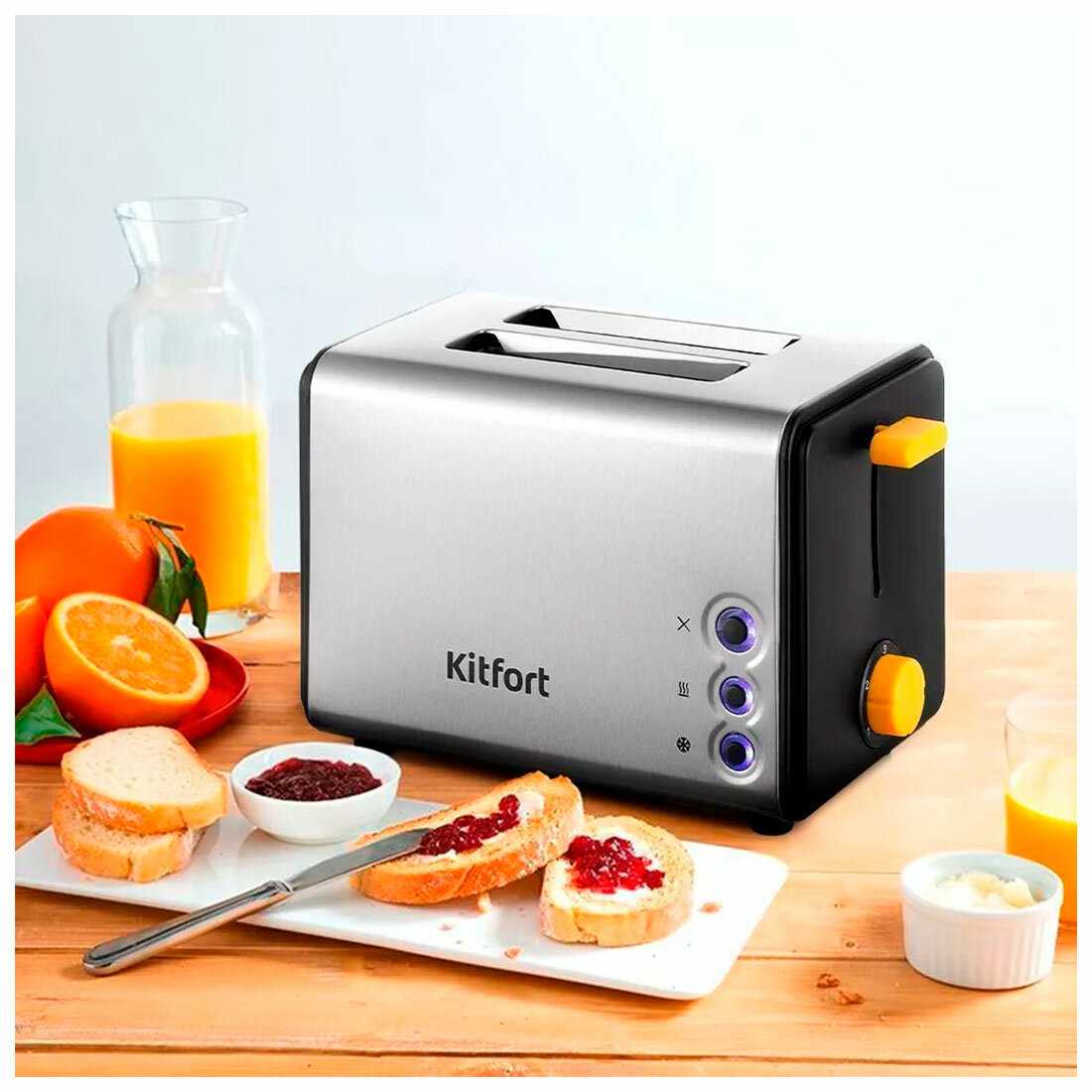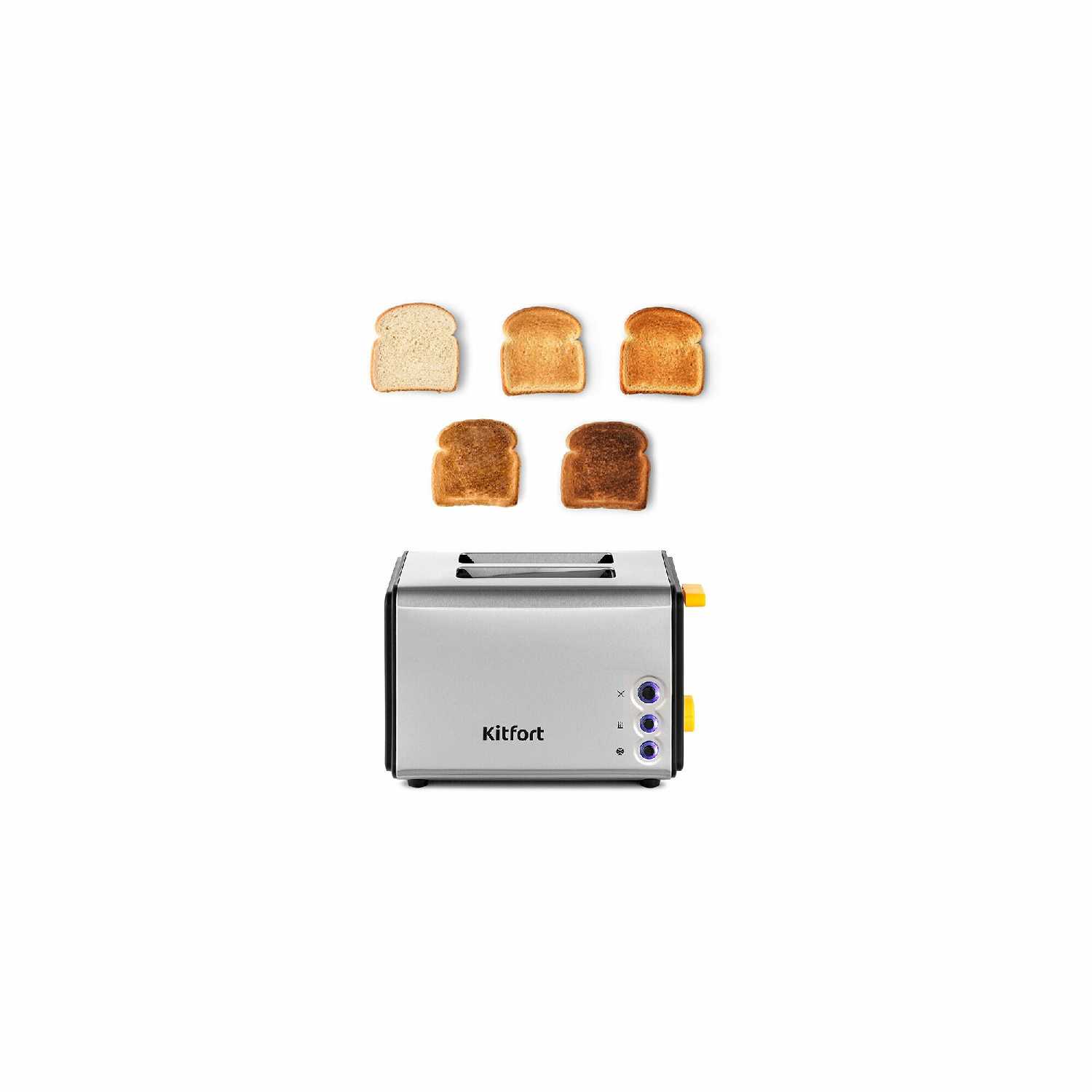 Очень нравится фирма Kitfort, бюджетно и легко в использовании. Тостер взяли в комплект к грилю, работает отлично,несколько степеней обжарки.