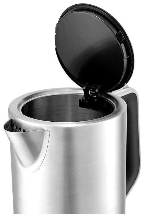 - Ручка с текстурным пластиковым покрытием не нагревается и обеспечивает надежный хват даже при полном объеме (1.7 л).