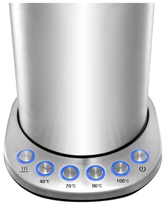 Очень классный чайник, один из немногих в котором есть механические кнопки поддержания температуры, что было ключевым для нашего выбора, а главное диапазон температур тот, что и требовался.