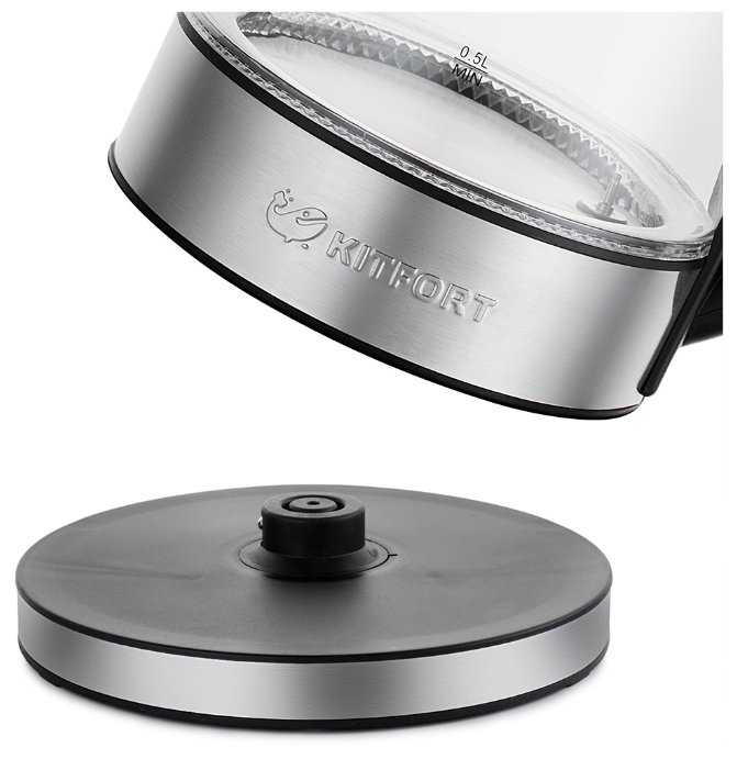 - + Я долго выбирала оптимальный чайник для своей семьи, пересмотрев кучу вариантов, от дешёвых до дорогих, я все же остановила свой выбор именно на этом. Немного смущало что фирма малоизвестная ( а мне она была неизвестна вообще), но почитав отзывы о их технике, я все же решила рискнуть. Заказала данный чайник в интернет магазине. Товар был упакован в фирменную коробку, не примечательного сероватого цвета с логотипом компании kitfort. Никаких царапин и дефектов обнаружено небыло. Никаких люфтов нет, ручка плотно прилегает к корпусу. Крышка открывается быстро и полностью, закрывается плотно, при вскипании не пропуская пар. Сама кнопка открывания крышки находится прямо на ней, что исключает случайное нажатие. На ручке расположены 3 сенсорные кнопки: включение, регулировка температуры и режим стерилизации. Сенсор реагирует хорошо, после выбора режима чайник сразу приступает к нагреву до нужной температуры. Греется на удивление тихо. Выключается быстро, издавая не громкий писк о готовности. Стекло закалённое, поэтому сразу после вскипания можно смело заливать холодную воду ( проверено). Вода наливается в чашку удобно, нерасплескивается. Очень удобен выбор температуры воды, больше не нужно выключать чайник на температуре вроде бы нормально нагрелся чтобы, к примеру, развести лекарство. Для каждого температурного режима предусмотрена различного цвета подсветка : 100 красная, 90 фиолетовая, 80 желтая,70 синяя 40 зелёная. Диоды расположены только на дне, поэтому при дневном свете видно только светящийся круг по нижней линии стекла. В темноте все выглядит иначе, подсветка яркая, вода подсвечена полность, очень завораживает. При нагревании воды подсветка не меняется, все зависит только от выбранного режима.