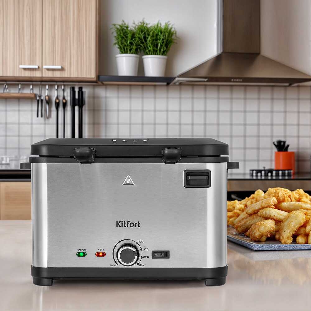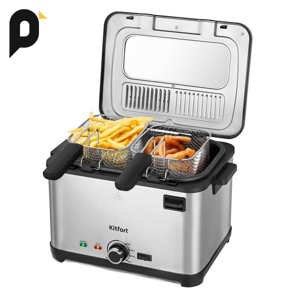 Фритюрницей KITFORT КТ-4079 пользуюсь всего две недели, но вся семья очень довольна просто удачная находка по своим критериям, параметрам и качеству. Изготовлена из качественного материала: металл и пластик. Вместительная корзина (сетка) до 1,5 кг нарезанного картофеля. Довольно таки быстрый разогрев масла (вместимость - 4,3 литра), около 5 минут (4 мин. 52 сек.) до 190℃. Но благодаря встроенному термостату в дальнейшем можно выпекать несколько разных блюд, без дополнительного разогрева. Все крошки (от панировки и других ингредиентов) попадают на дно и там хранятся до их удаления, при этом не создавая проблем при приготовлении блюд и не пригорают. Программы, заложенные в блоке управления, которые задаются автоматически, практически не нужно корректировать, но если это необходимо сделать, то легко корректировать до начала запуска, как по времени, так и по температуре.