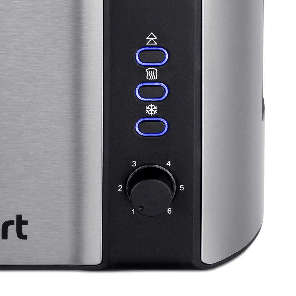 Тостер очень понравился, работает превосходно. Большие тосты готовим на 4-ом режиме, получаются идеальные, равномерно просушенные поджаренные. Небольшие ломтики батона и на 3-ке уже вкусные, румяные. Очень удобно, что есть большой выбор режимов для любого вида хлеба. Все рычаги работают отлично, плавно. Тосты готовятся быстро, выбрасываются почти бесшумно. Функция подогрева тоже очень порадовала. Подогревали пирожки, что очень удобно. Также есть функция разморозки, пока не пробовали, но возможно пригодится в будущем.