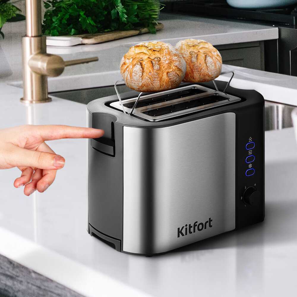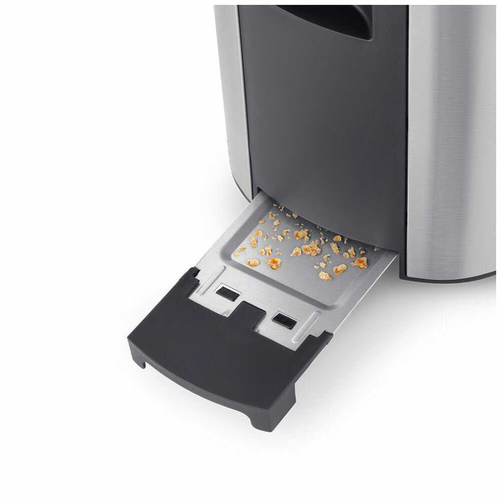 - + Отличный тостер! Давно такой хотела! Есть специальные штуки для подогрева - тоже удобно, если хочется тёплый бутерброд. Размораживание не пробовала. Лоток для крошек достается без проблем!