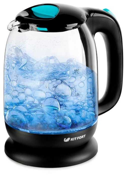 Электрочайник Kitfort KT-625-2 — бюджетное решение для пользователей, ценящих эстетику и скорость работы. Его ключевое преимущество — стеклянная колба с синей подсветкой, которая не только упрощает контроль за уровнем воды, но и становится элементом декора на кухне. Мощность 2200 Вт обеспечивает быстрое кипячение, а автоматическое отключение повышает безопасность. Эргономичный носик и ручка из матового пластика делают использование комфортным, хотя угол открытия крышки (менее 90°) осложняет наполнение.