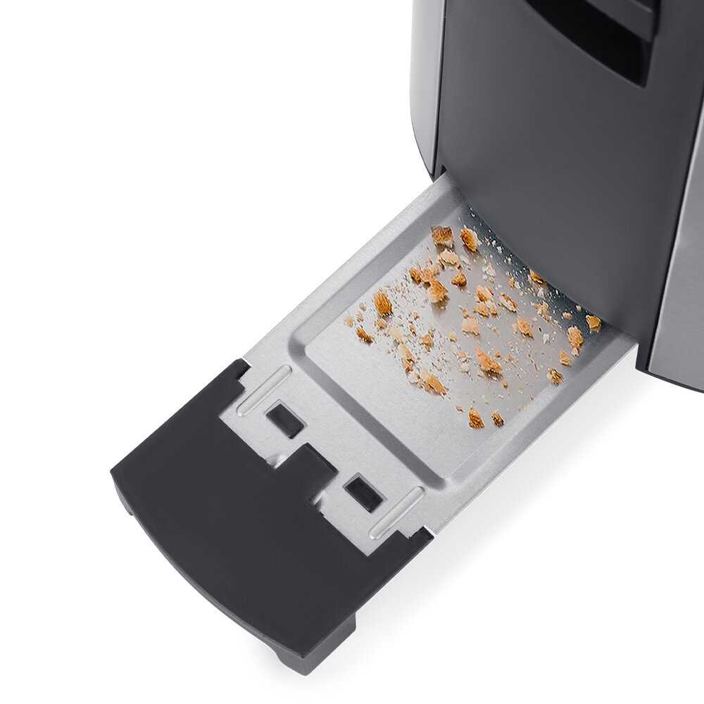 Большой отсек для крошек, легко чистится. - - Не самый длинный кабель питания, хотелось бы минимума 50см длиннее