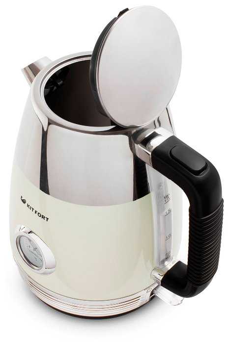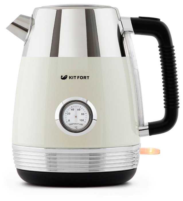 В целом классная модель чайника, привлекательный внешний вид, стильный дизайн, сочетание бежевого с хромом смотрится шикарно, удобная функция наличие термометра, различные защиты все это в целом является большим преимуществом по сравнению с другими конкурентами. Покупкой доволен. Данный чайник полностью соответствует соотношению цена и качество. Всем советую данную модель чайника Kitfort да и в принципе, всю их продукцию. Покупкой остались очень довольны!