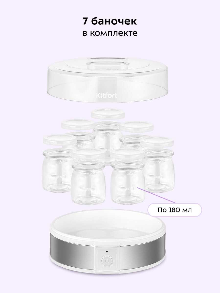 - - Коробка рваная, обмотана скотчем, липкие следы как от слизней. Банки отлиты плохо, с потёками и шероховатостями, к тому же 100 мл (маркировка на банках). Инструкции нет, гарантийного талона нет, магнит "в подарок" прилип к чужим рукам. Банки аыбросила, смотрела-смотрела на йогуртницу - выбросила тоже. Поняла, что пользоваться не смогу - как с помойки. Взяла потому только, что похожа на ту, которая есть, но она сейчас доставляется "из-за рубежа' и дороже стала а четыре раза. Никогда не брала технику китфорт, отзывы в большинстве своём отрицательные. Если не хотите получить отрицательные эмоции и грустный визуальный ряд - проверяйте в ПВЗ обзательно.
