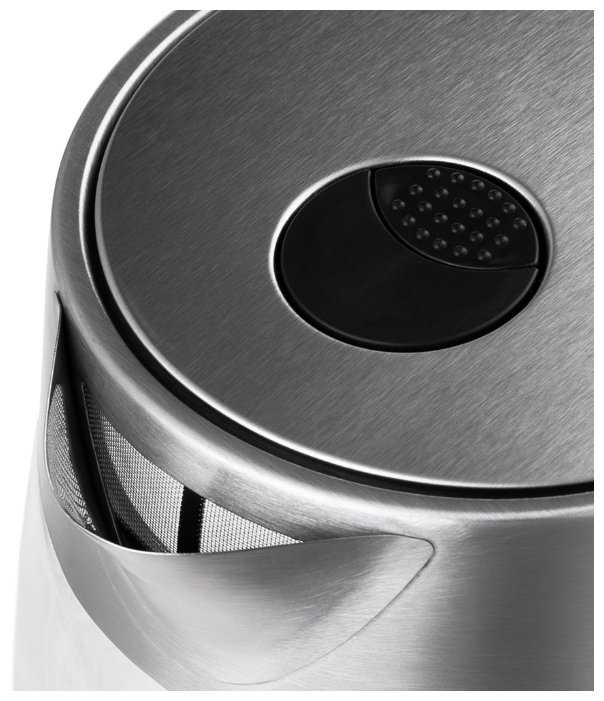 - - К недостаткам хочу отнести неполное открытие крышки и как будто неплотное её прилегание (не заподлицо с корпусом чайника), в каких то моментах это доставляет некоторые неудобства, и пока не понял как снимается сеточка в носике, при необходимости её почистить.