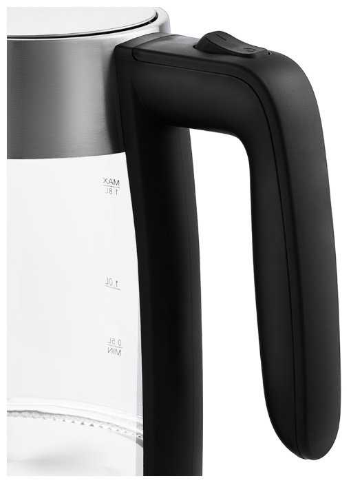 - Прозрачное стекло позволяет видеть уровень воды и процесс кипения издалека.
