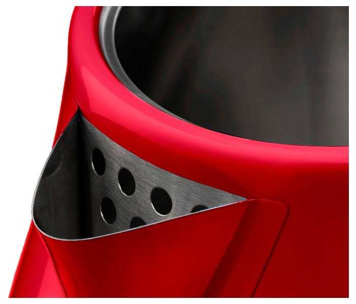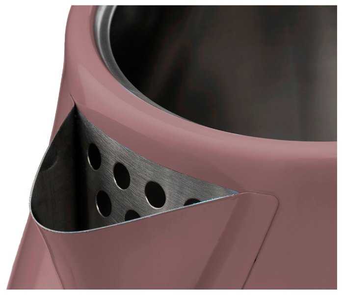 Полоска уровня воды расположена сзади и заслонена ручкой, что-либо разглядеть почти невозможно. Вместо синтетического фильтра от накипи просто дырочки в металле корпуса.