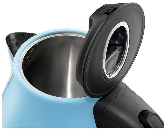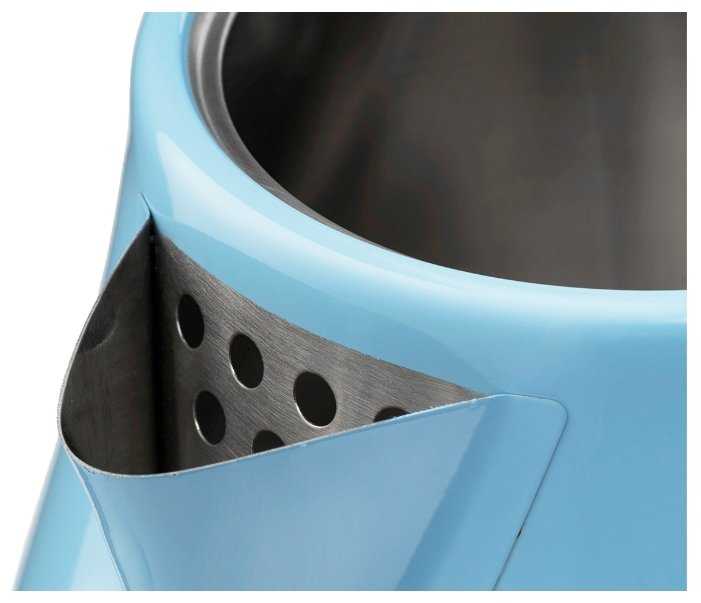 - + Чайник лёгкий, приятного голубого цвета, интересного дизайна. Чайник работает очень тихо, быстро закипает.