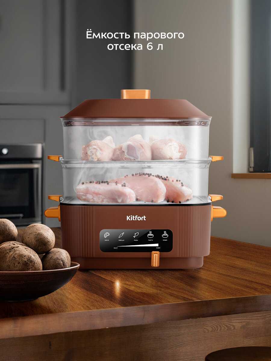 | Особенности конструкции : | индикатор включения, съемные решетки, углубления для варки яиц |
