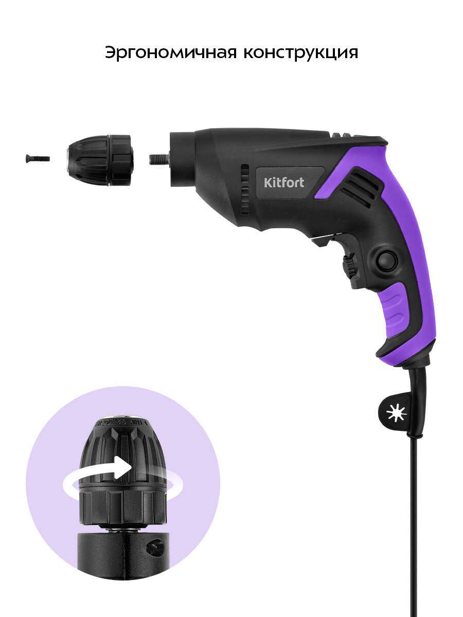 - + Дрель Kitfort — это отличный выбор для домашнего использования и небольших ремонтных работ. Я могу выделить несколько ключевых преимуществ: