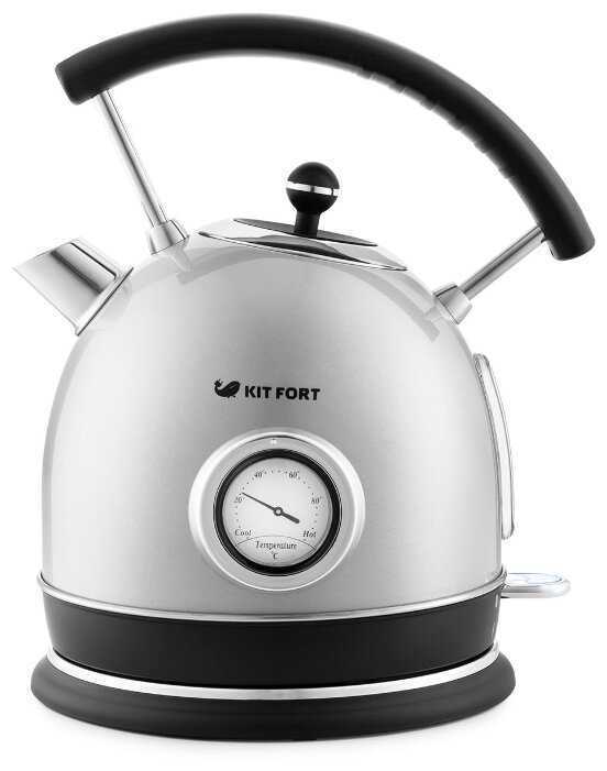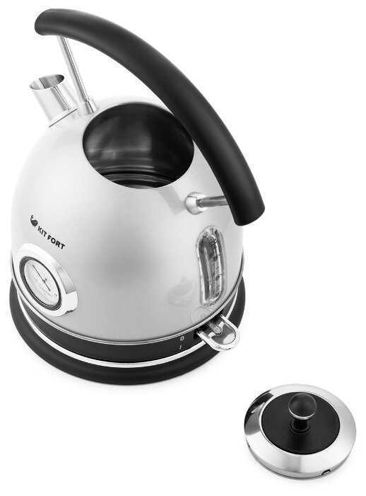 - + Мне нравится все! В жизни он даже посиматичнее, чем на фото в каталоге! Решила купить недорогой, но прикольный чайник. Такую форму хотела давно, но боялась, что она неудобная - что трудно наливать воду в чайник и наливать в стакан - но все оказалось супер. Выбрала Китфорт, тк нашла в интернете промокод на скидку (большая кажется, процентов 15) и чайник получился ровно за 2 069р. Пользуюсь постоянно, ничего в нем не раздражает, все удобно (хотя на моем веку было много чайников, 90% из них сильно неудобных). Этот чайник хорошо наливает воду в стакан - не проливается ничего из-за носика. То есть супер хорошее юзабилити (особенно по сравнению с длинными, узкими, безносыми чайниками, которые я всегда почему то выбирала - прямо небо и земля). Технически, на мой взгляд, он отличный. Подбирала под кухню, которую пришлось нам с мужем делать в разгар моей беременности, серые модные цвета выбирала я, поэтому и заморозилась поискать крутой дешевый стильный ретро-чайник серого цвета. Ура! У меня все получилось. Еще есть 1 месяц понаслаждаться беременностью и вперед, к родам (не судите строго мой отзыв, надеюсь будет полезен кому то). Мне безумно нравится это чайник :)