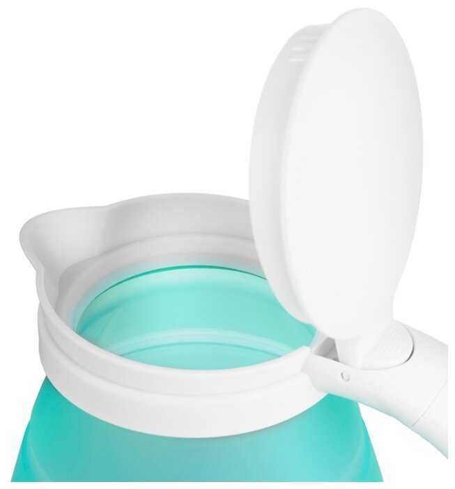 Купили данный чайник в поездку, так как ездили с маленькими детьми и нужна была прокипяченная вода для приготовления детских каш и смесей. Чайник себя полностью оправдал. Сначала присутствует запах силикона, но после пары кипячений запах исчезает. Чайник занимает очень мало места. Вода кипятится примерно за 3 минуты. Дно чайника не нагревается, поэтому удобно его поднимать за ручку, на всякий случай придерживая за дно. Шнур немного коротковат, но это не портит общее впечатление от чайника.