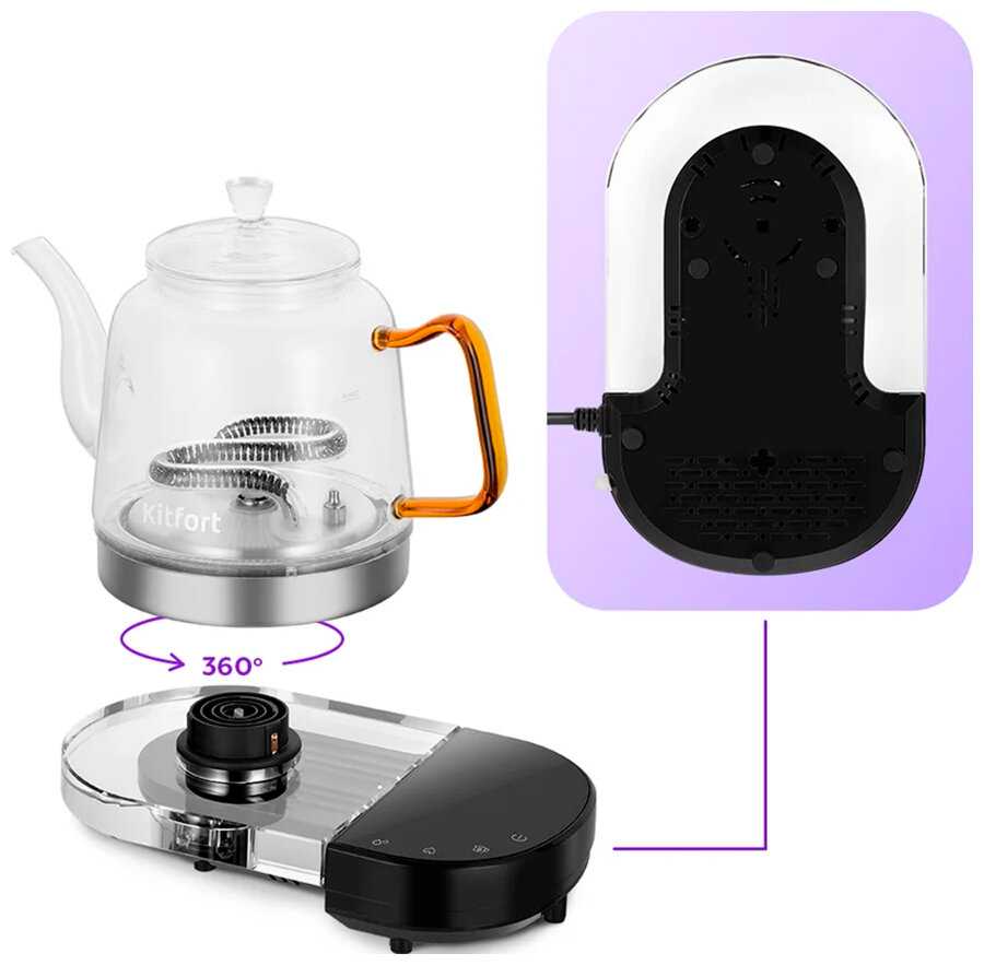 | Безопасность : | блокировка включения без воды, отключение при снятии с подставки |