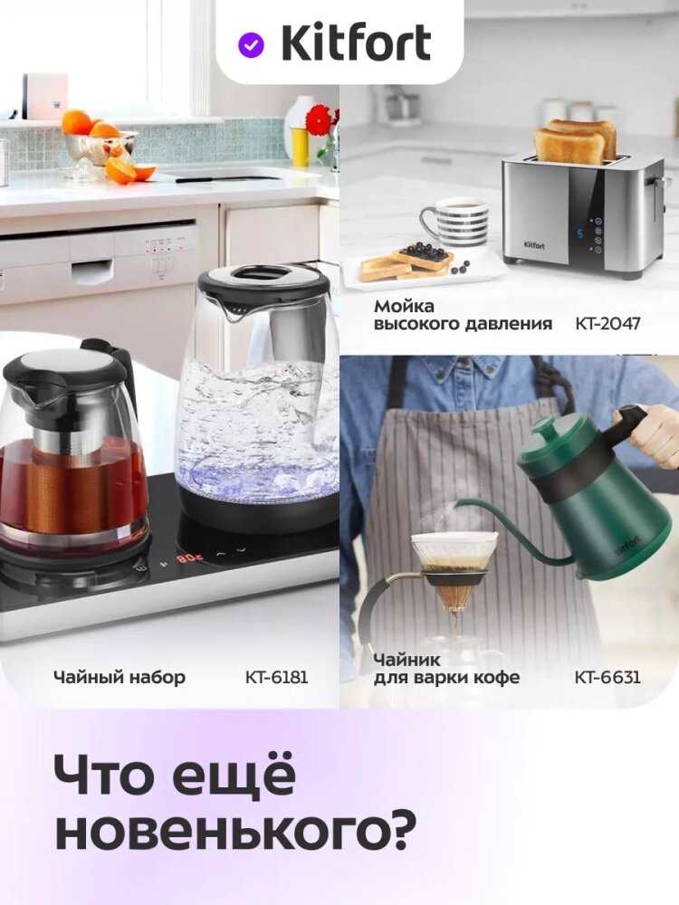 - + Этот чайник выглядит стильно и приятно радует глаз. Подставка с индикатором температуры оказалась настоящей находкой, она позволяет легко следить за нагревом и выбирать нужные параметры. Крышка полностью снимается, что упрощает процесс использования, в отличие от моделей, где она просто откидывается. Я выбрал его именно благодаря этой удобной функции, и она полностью оправдала ожидания после сравнения с другими вариантами от Kitfort.