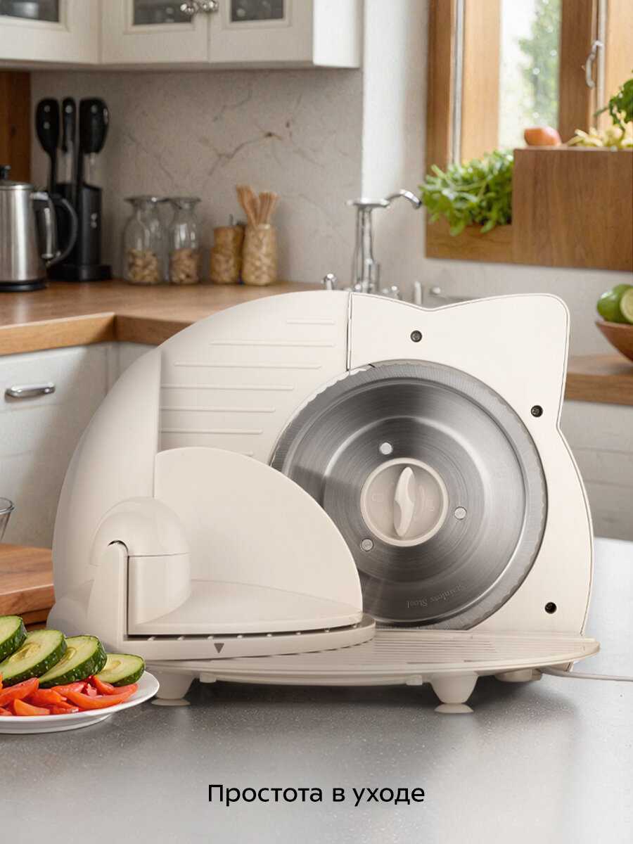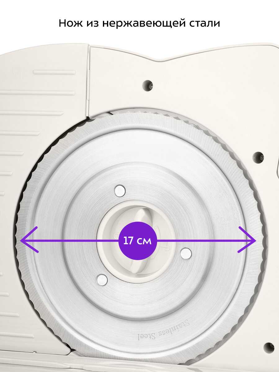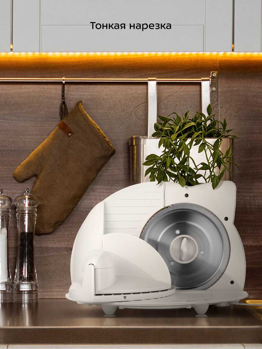 - + Ломтерезка очень понравилась. Три скорости вращения для разных продуктов.Инструкция понятная, собрала быстро. Нарезала сыр и колбасу красиво. Можно регулировать толщину нарезки. Легко собирается и разбирается, моется. Порадовали ножки на присосках.