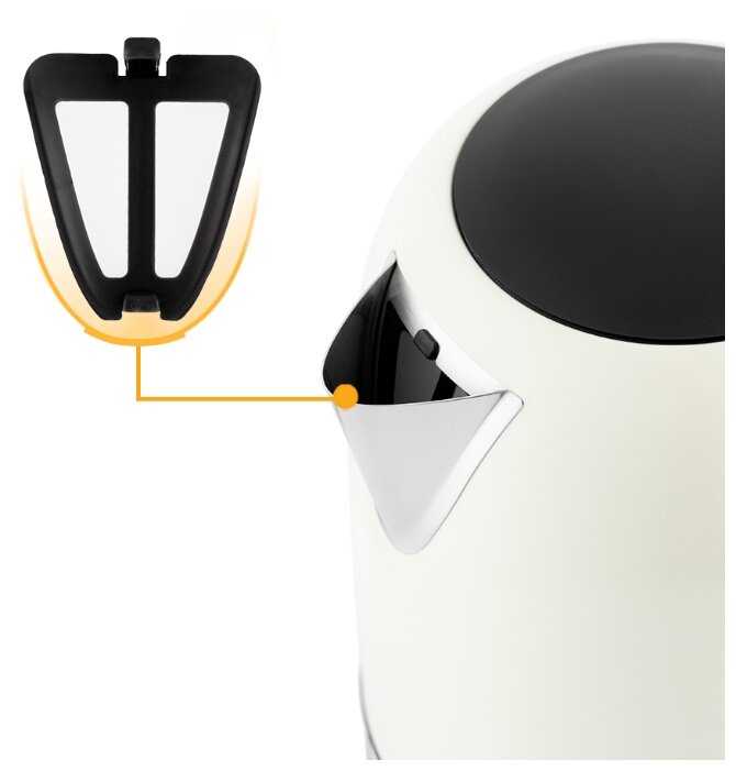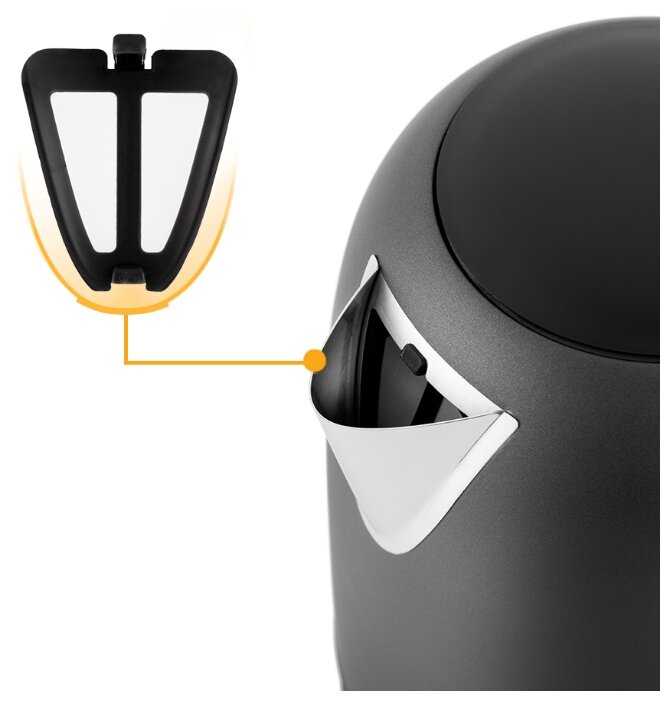 - + Яркий акцент на кухне. Встроенный термометр очень удобный, можно сразу оценить температуру и не кипятить повторно. Также понравится ценителям чая, для кого важна температура воды. Закипает достаточно быстро, не шумный.