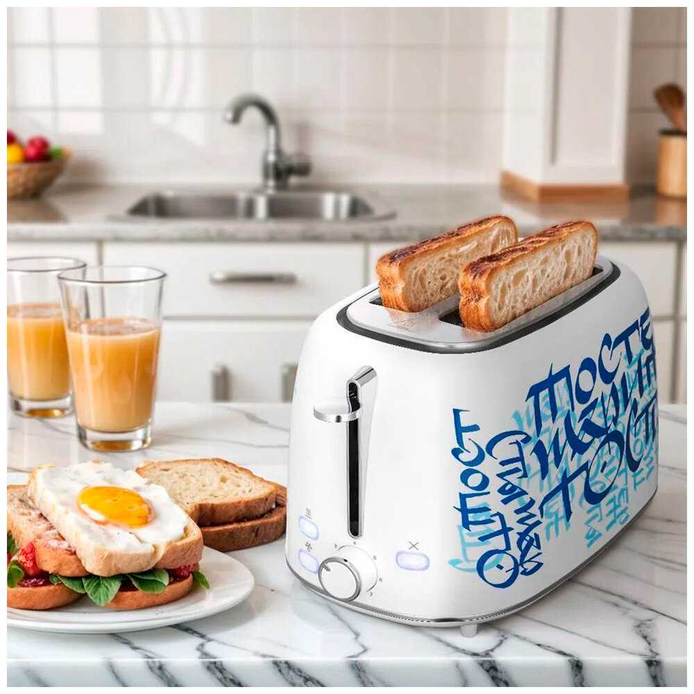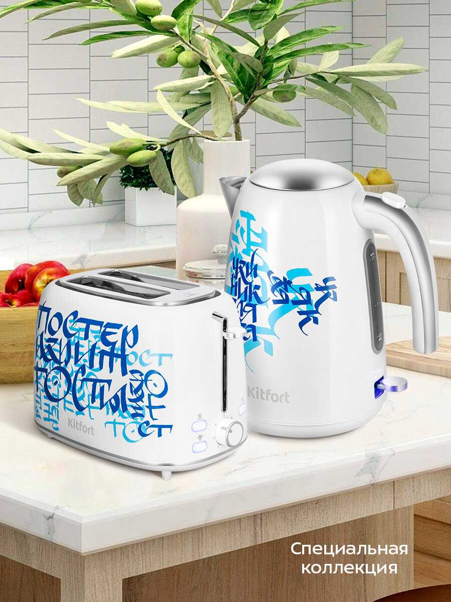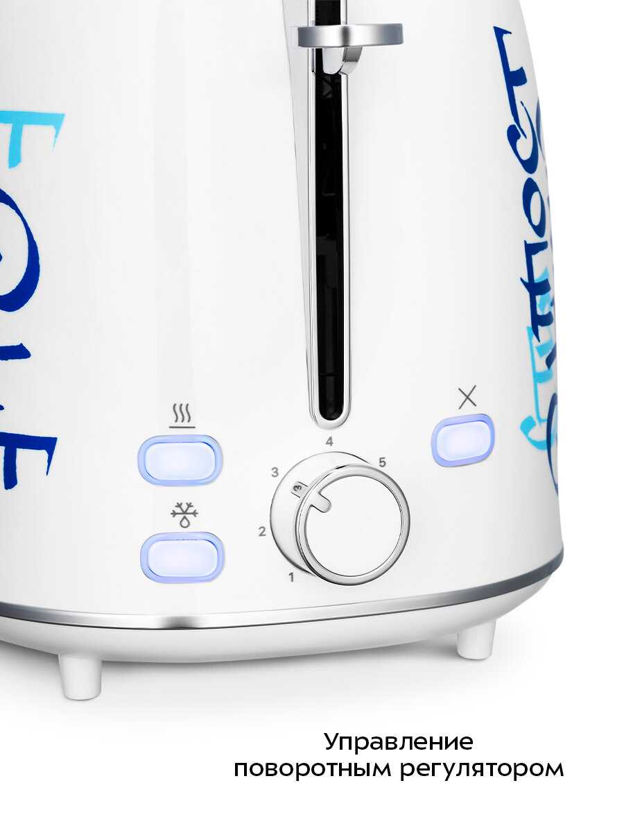Тостер в этой «граффити‑версии» мгновенно притягивает взгляд и отлично разбавляет кухню. Компактный форм‑фактор позволяет ставить устройство даже на узкой кухонной полке, а два широких слота справятся с ломтиками любой толщины. За этим эффектным фасадом скрывается привычный набор режимов — от мягкого подрумянивания до хрустящей корочки (7 степеней обжарки). Съёмный поддон для крошек выдвигается одним движением и не позволяет мусору скапливаться внутри. Благодаря удачному сочетанию нестандартного дизайна, многофункциональности и простоты ухода этот Kitfort станет заметным и практичным акцентом любой кухни.