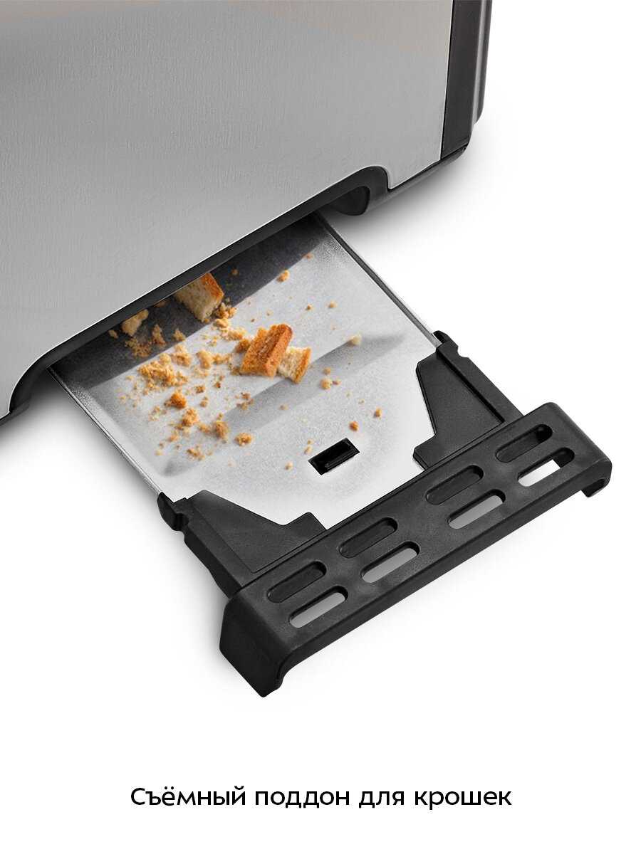 - Быстро нагревается и эффективно готовит тосты благодаря мощным элементам нагрева.