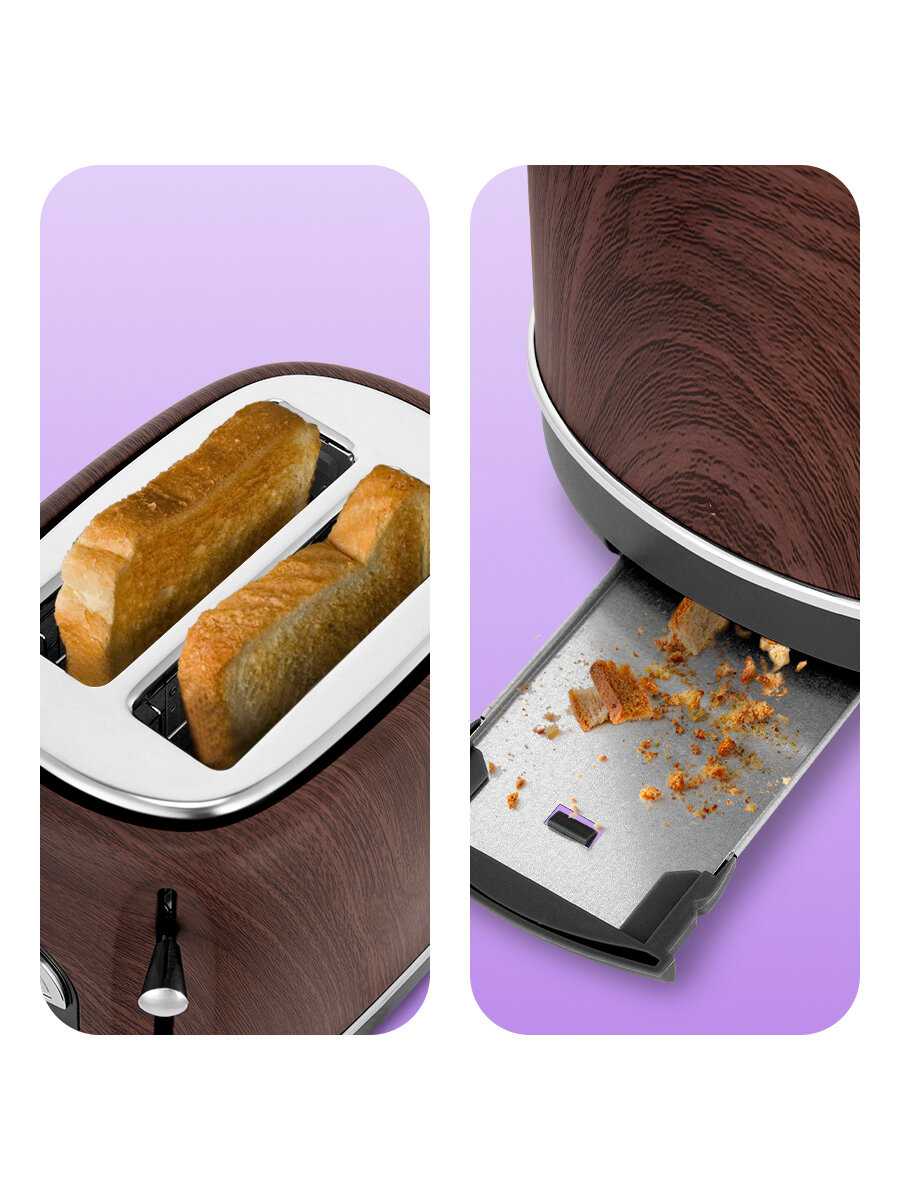 - + Тостер классный — сразу понравился цвет, тёплый коричневый «под дерево», выглядит уютно и стильно. Хлеб жарит быстро и равномерно, не надо стоять и контролировать. Удобно, что можно настроить степень поджарки под себя. Есть выдвижной лоток для крошек — мелочь, а как облегчает жизнь! Ничего не застревает, ломтики легко вынимаются. Пользуюсь каждый день и радуюсь, что выбрала именно его.