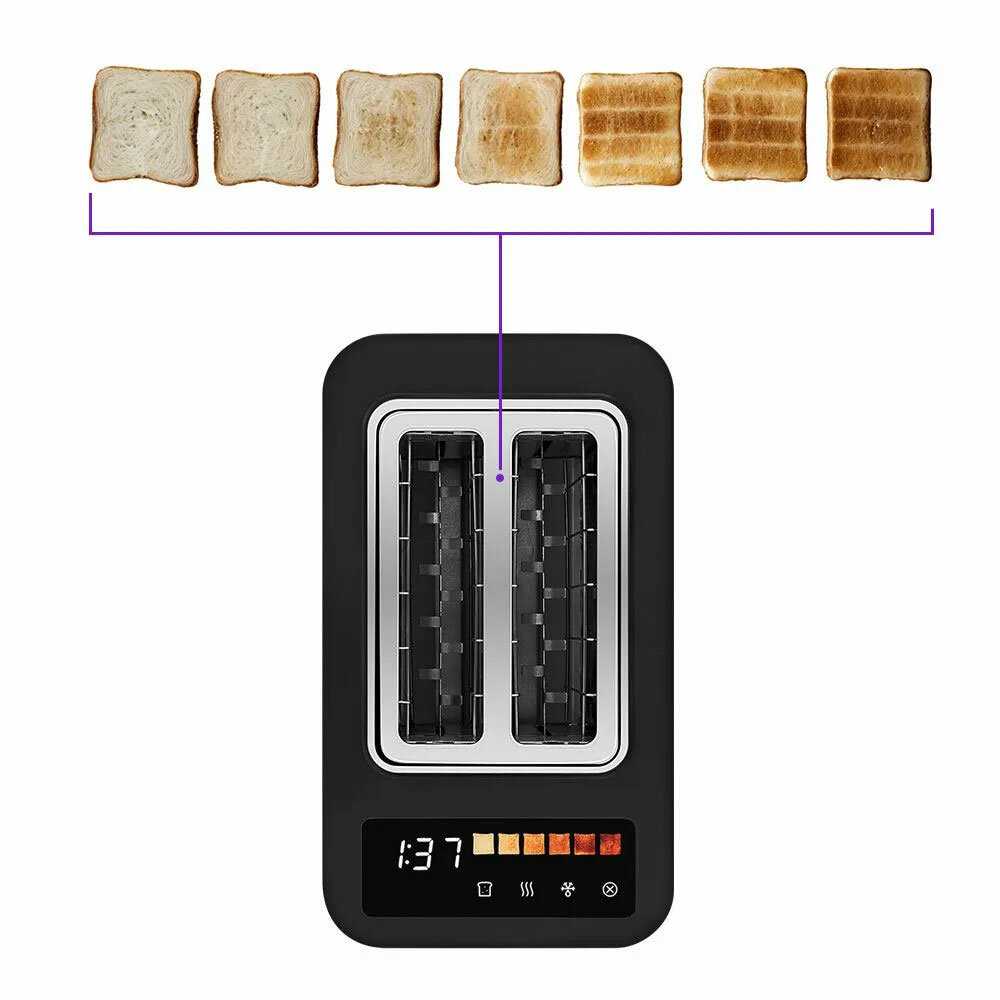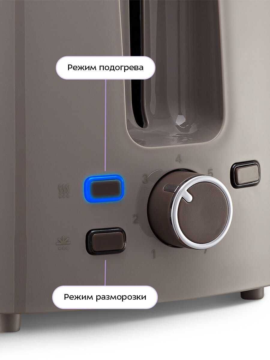 - + Очень красивый дизайн, 7 режимов для поджарки тостов. Есть режим для разморозки хлеба. Простой в использовании, нет никаких заморочек.