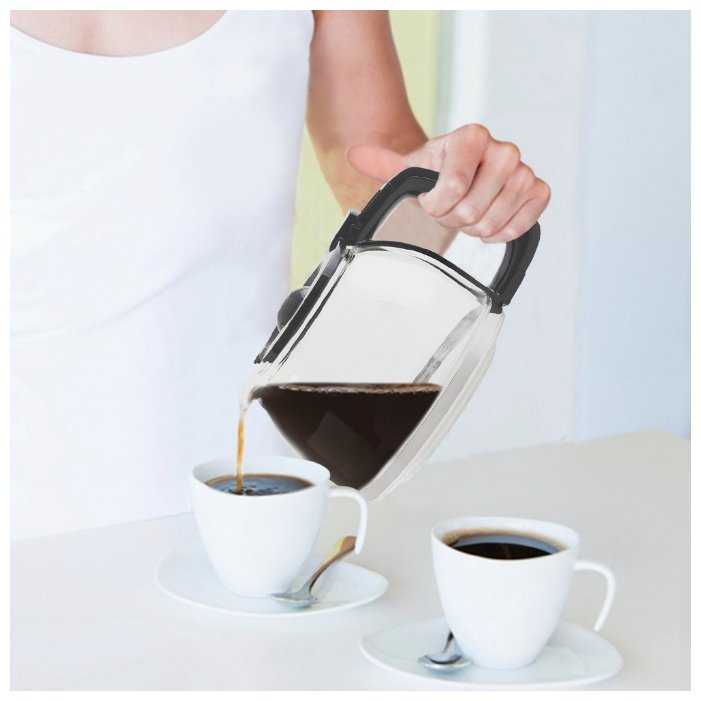 - Легкая очистка съемных деталей (фильтр, колба) вручную или в посудомоечной машине.