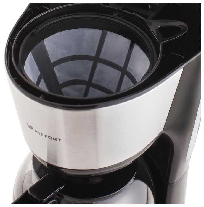 - + Отличная кофеварка. Свою функцию выполняет. Есть подогрев, если кофе в кофейнике остыл, просто включили, подождали несколько минут и у вас снова горячий кофе. Ёмкость для воды при этом должна быть пустая. В комплекте есть нейлоновый фильтр, но я использую бумажные №4, просто потому что удобнее. Готовит быстро, 600 мл за 5-6 минут. Заказ делал вместе с кофемолкой Kitfort КТ-772-1
