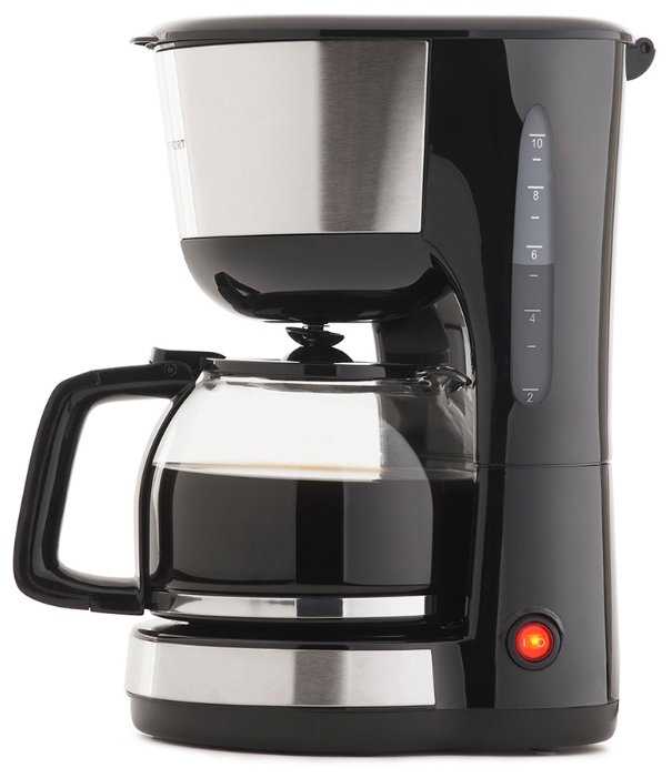 - + Добрый день. Это моя первая кофеварка! Когда покупала не думала, что она такая классная! Благодаря ее высокой мощности, на приготовление кофе уходит пару минут! Чайник, объемом 1,2л., подходит для всей семьи. Очень проса в применении: для этого достаточно засыпать необходимое количество молотого кофе в многоразовый фильтр, залить в резервуар воды и нажать на одну лишь кнопку! И вот – кофе ароматный, свежезаваренный готов! На протяжении продолжительного времени кофеварка поддерживает температуру готового напитка, что очень удобно. Берите, не пожалеете!