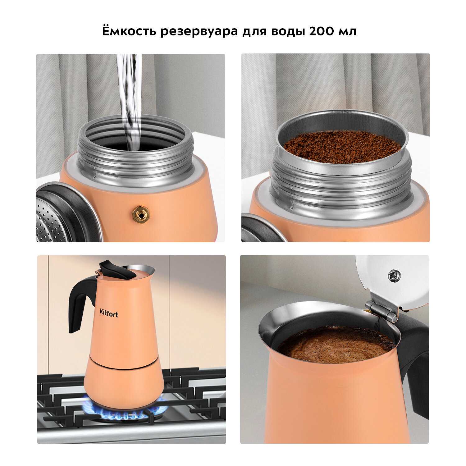 - + Гейзерная кофеварка КТ-7152-2 стала настоящим открытием для нашей семьи! Особенно радует её нежный персиковый цвет – смотрится стильно и необычно на кухне.