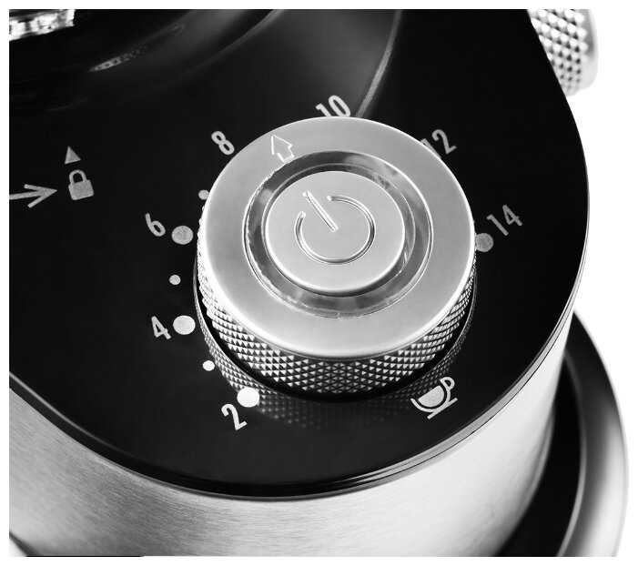 - Механический переключатель с 15 ступенями помола обеспечивает гибкость настроек под разные методы заваривания.