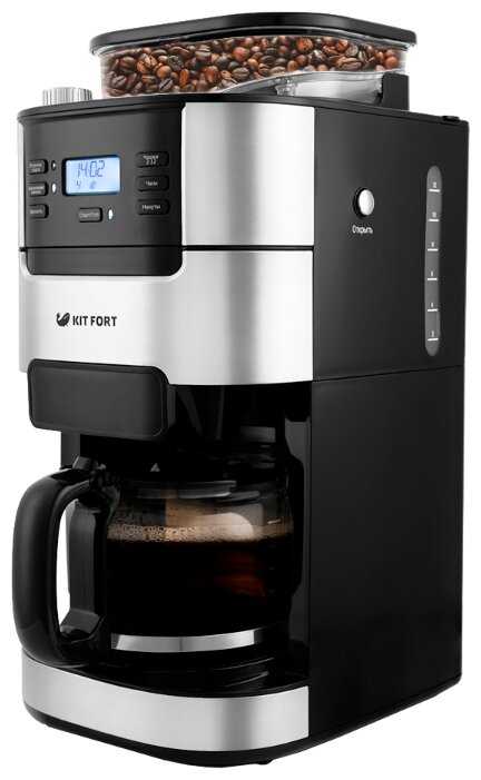 Очень рада покупке, давно хотела, долго выбирала. На интуитивном уровне склонялась к китфорт, покупала паровую швабру и осталась очень рада. Поэтому в качестве кофеварки не сомневалась и взяла не думая. Хорошо вписалась на фоне другой технике, довольно компактная, хоть и имеет внушительный размер. Удобная разметка воды, как и панель управления. Единственное, что расстроило, и о чем узнала в процессе эксплуатации, это если заливает полный бак воды, но выбираешь 2 кружки, она наварит все 12 кружек, поэтому воду каждый раз нужно заливать нужное количество и не больше того, сколько кружек хочешь сварить. Но это не такой большой недосток, чтобы не советовать ее к покупке. Поэтому рекомендую, смело покупайте.