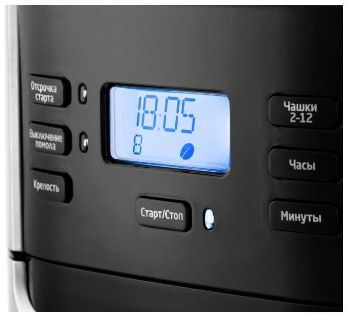 - Позволяет запрограммировать приготовление кофе к определенному времени, например, к моменту пробуждения.