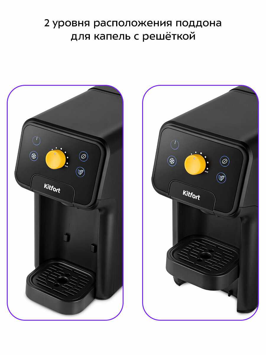 - - довольно большой размер, несколько неудобная фиксация ёмкости для воды, в режиме холодного кофе течет горячая вода - проверил у 2-х экземпляров.