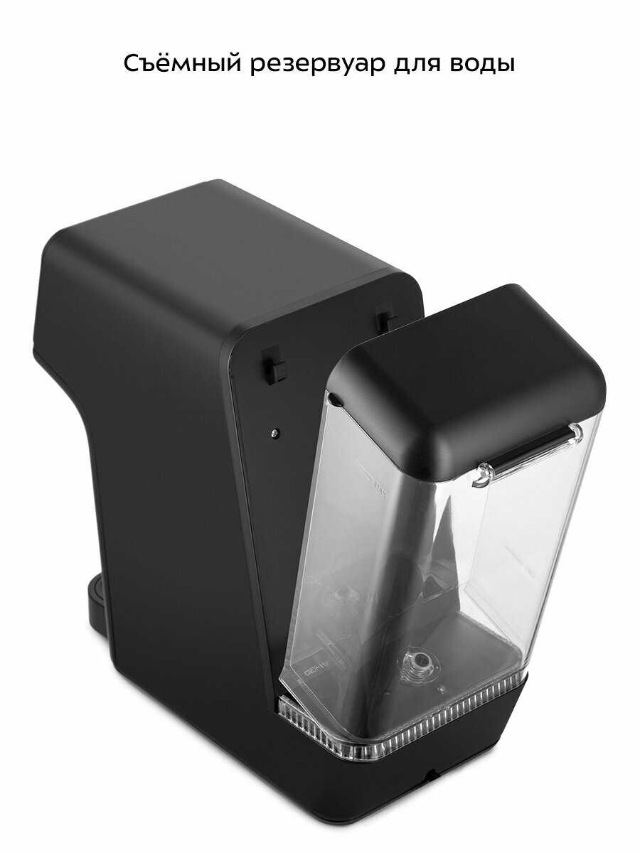 - + Красивый дизайн, удобно и просто в использовании, большой объем бака для воды и регулирование объема кружки очень понравилось