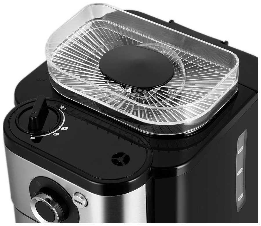 По функциям она тоже супер! Очень удобно и легко, засыпаешь кофе, он кстати очень красиво смотрится в резервуаре, быстро и без проблем перемалывается.