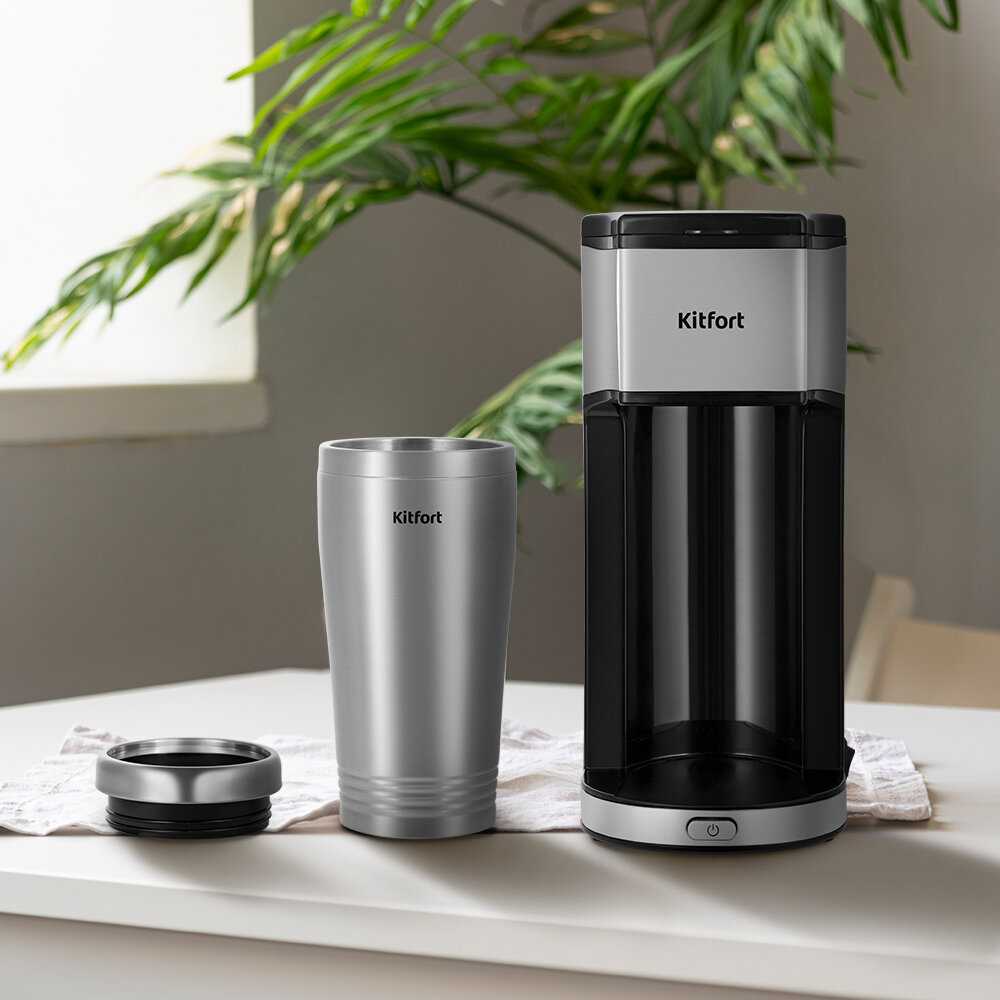 - + Очень удобная кофеварка с красивым дизайном. Удобно, что в комплекте идёт термокружка. Можно брать с собой. Инструкция понятная и доступная. Рекомендую.