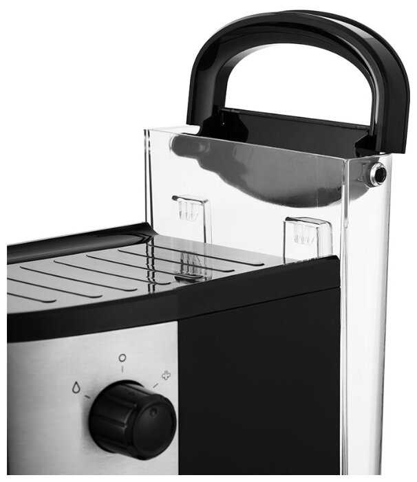 - Интуитивный дисплей с индикацией режимов (кофе/пар) и предупреждением о необходимости долива воды.