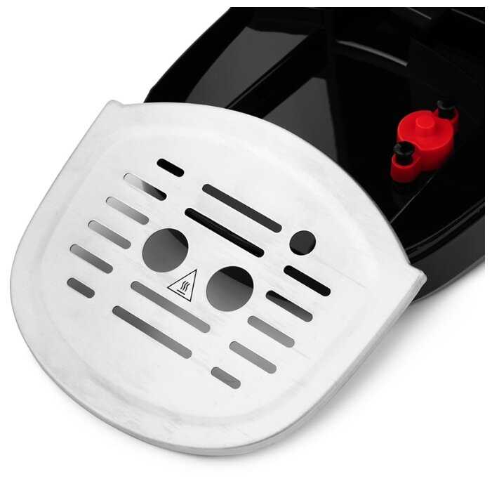 Качество сборки соответствует бюджетному сегменту. Пластик корпуса устойчив к царапинам, но поддон быстро теряет вид, а хромированные элементы требуют регулярной полировки. Запах пластика в первые дни эксплуатации и вибрации при работе — типичные «болезни» недорогих кофеварок. Серьёзных нареканий к надёжности нет: при регулярной декальцинации и очистке уплотнителей устройство служит 2–3 года без поломок.
