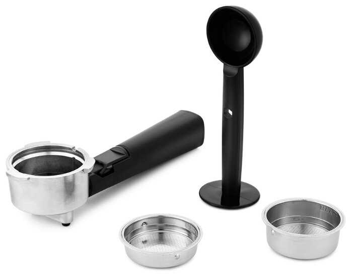 - Рожок с двумя фильтрами (на 7 г и 14 г) позволяет готовить одинарный или двойной эспрессо с плотной пенкой «крема».