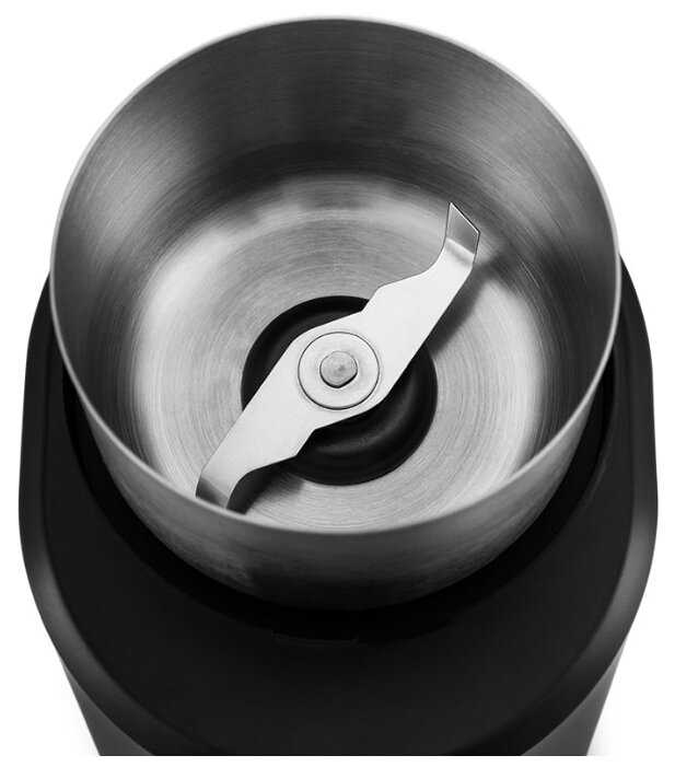 - Чаша легко снимается и моется под водой без риска замочить мотор, что упрощает уход после помола кофе, специй или сахара.
