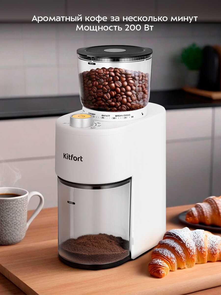 - Сомневался в цвете (большинство кофемолок склоняются к стальным цветам), но в белом цвете кофемолка тоже выглядит неплохо и в кухонный интерьер вписывается.